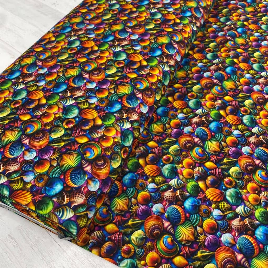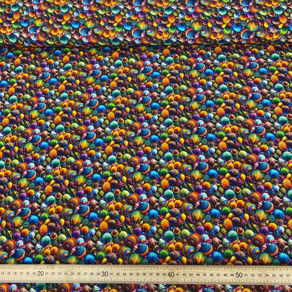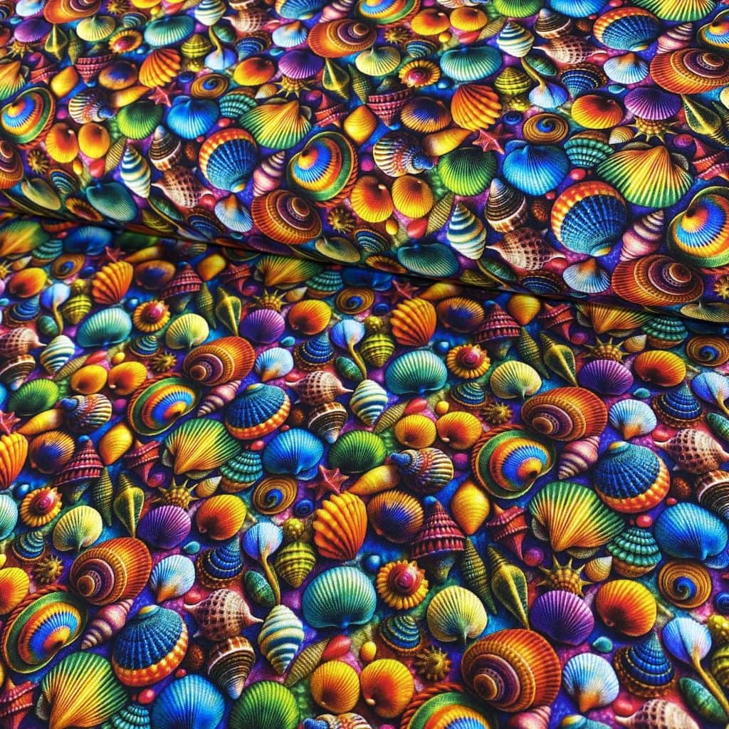 La tela de algodón 100% tipo popelín estampado digital es ideal para las creatividades de patchwork. Hablamos de un tejido ligero, suave al tacto y muy agradable de trabajar. Perfecto tanto para confección como para proyectos de costura creativa. Este tejido viene con estampado digital 3D con caracolas en diferentes colores… ideal para la confecciones de verano, playa y estivales.