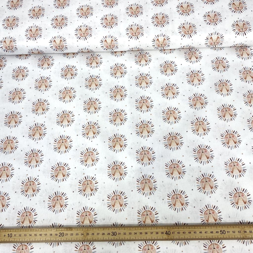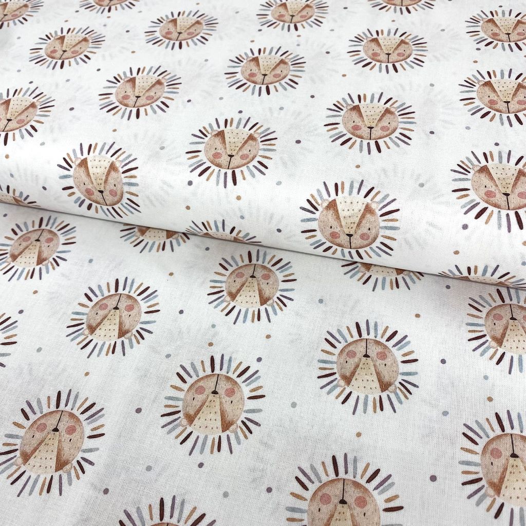 La tela de algodón 100% tipo popelín estampado es ideal para las creatividades de patchwork. Hablamos de un tejido ligero, suave al tacto y muy agradable de trabajar. Perfecto tanto para confección como para proyectos de costura creativa. Este estampado viene con dibujos infantiles de leones con el pelo de colores… ideal para confecciones infantiles de animales.